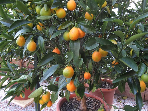 Der Busch ist dekorativ und säuft viel Wasser, bedeutend mehr als die anderen. Im zweiten Winter wusste ich das noch nicht. Er hat dann im Januar mehr als die Hälfte der Früchte verloren, vielleicht wegen Trockenheit. Meine Töpfe stehen nicht in Untertassen, darum kann ich ihn kaum übernässen. Vielleicht war die Ursache auch ein Düngermangel (Phosphor), oder viellicht macht er das einfach so. Wenn man alles wüsste?! Diesen dekorativen Busch mit essbaren Früchten würde ich wieder anschaffen. Die Bezeichnung Citranquat wird von seinen Vorfahren Citrange und Kumquat abgeleitet, wobei die Citrange auch wieder ein Hybrid von der Süssorange und dem Poncirus ist.
