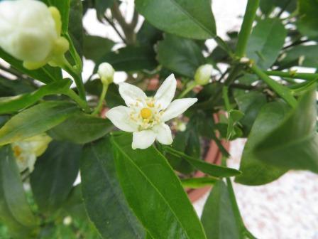 Blüte: 2.5cm, stark duftend. Der Hybrid kennt zwei Blühphasen, eine im Frühjahr, beeinflusst von der Citrange und eine im Sommer von der Kumquat. Welche Blühphase mehr Früchte ausbildet ist unterschiedlich.