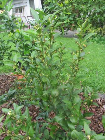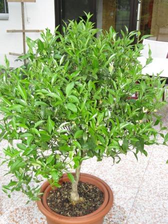 10.August 2014 Der Busch hat schon geblüht und setzt viele Früchte an. Davon habe ich im März 2015 meine erste Citrus-Konfitüre hergestellt.