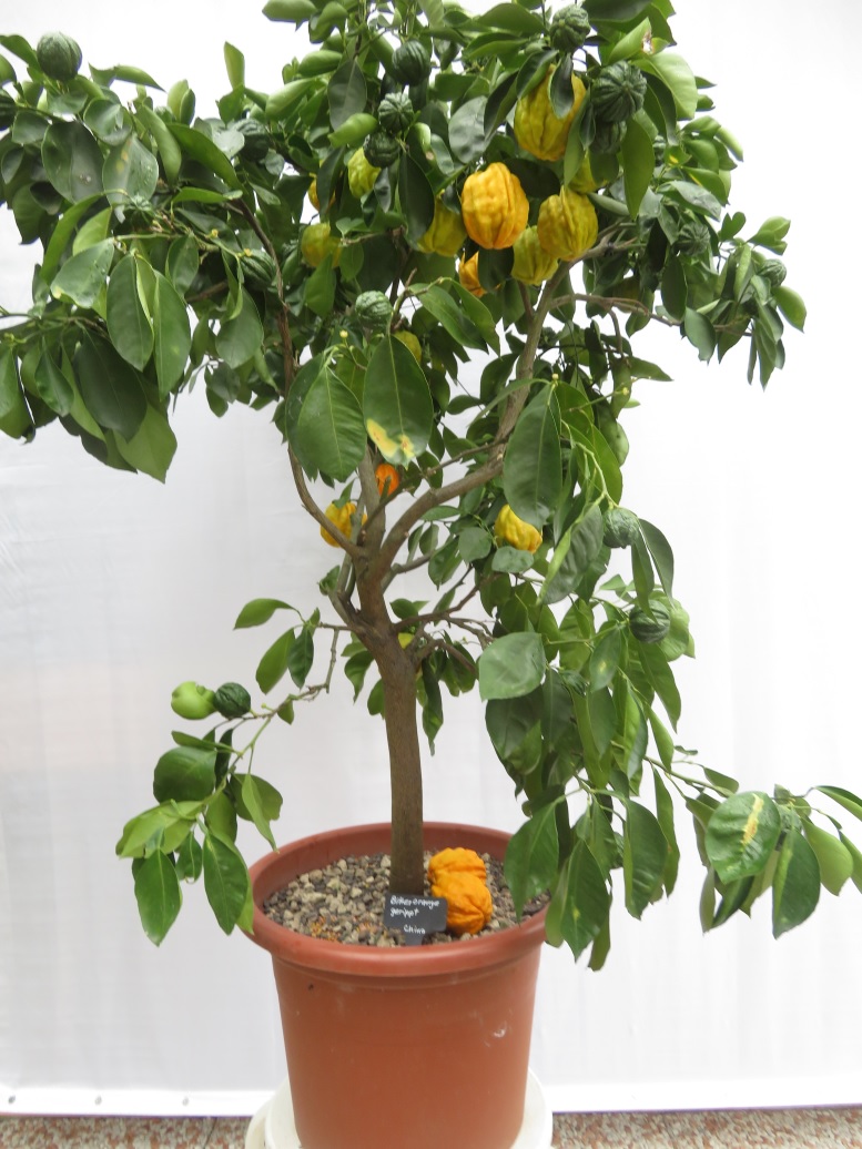 (E) 5.März 2016: Beim Einkaufen sah ich so nebenbei ein kleine Bitterorangen-Bäumchen. Daheim angekommen liess es mir aber keine Ruhe. Ich musste es haben und ging zurück. Es ist eine gerippte oder gefurchte Bitterorange. Bild vom 8.Mai 2016