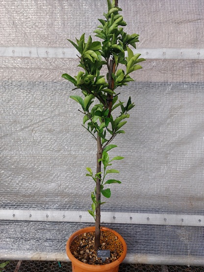 Wuchs: kompakte Krone, mittelstarker, aufrechter Wuchs. Blüten: Knospen und Blüten weiss, intensiver Duft; Blüten erscheinen mehrmals im Jahr. Früchte: die früheste Orange mit einer kleinen Frucht in der Frucht, mittelsaftig und sehr süss; sehr leicht zu schälen, perfekt geeignet für den Frischverzehr. Geschichte und Verwendung: stammt von 'Washington' ab und wurde in Europa gezüchtet. Frosthärte/Überwinterung: hell und kühl (3-10°C) überwintern, nie warm überwintern. (Quelle Tintori)